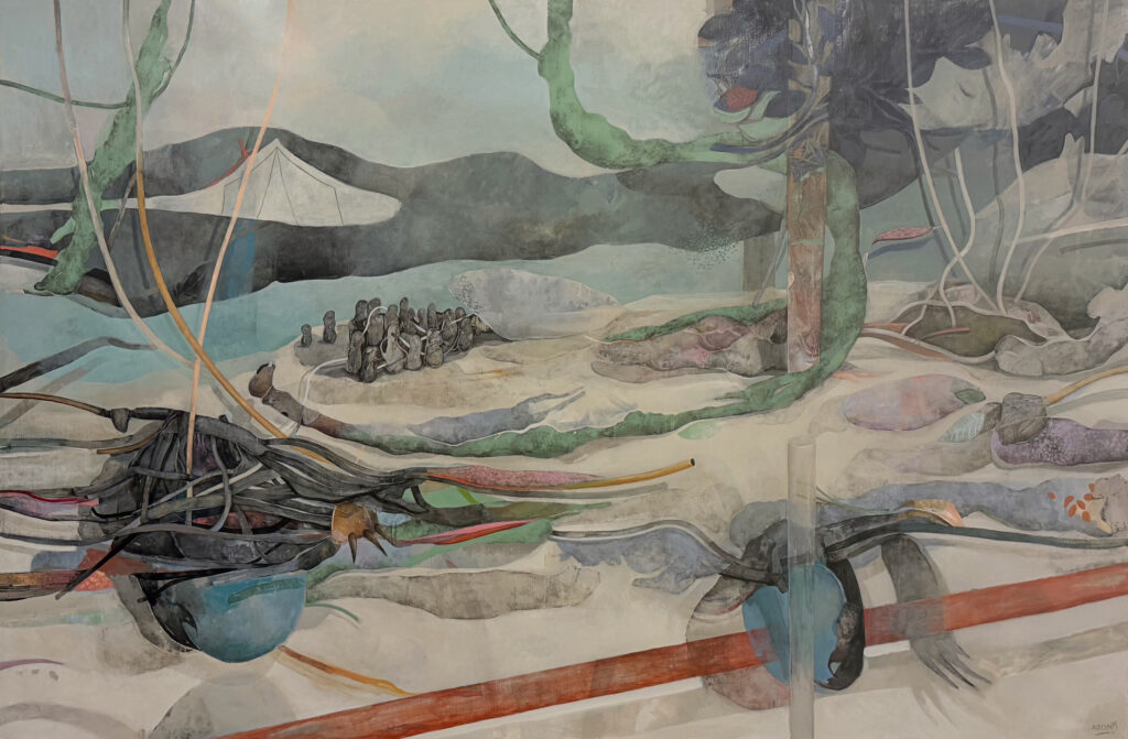So the exhibition leans more toward a lingering state, one that resists being packaged neatly. The works hold traces of reckoning, yes, but without pretending to solve or reconcile. I’m more interested in that uneasy in-between — where memory, residue, and desire overlap. That’s where the political charge lies: in confronting the fact that we’re still living among what remains, not beyond it.
