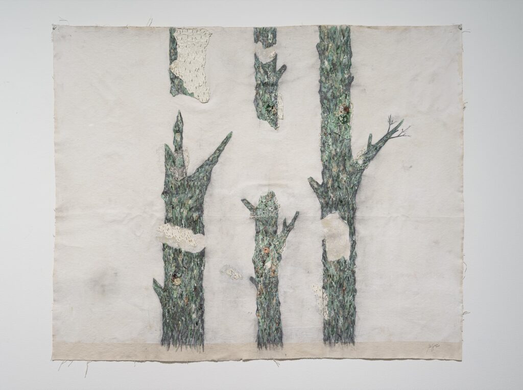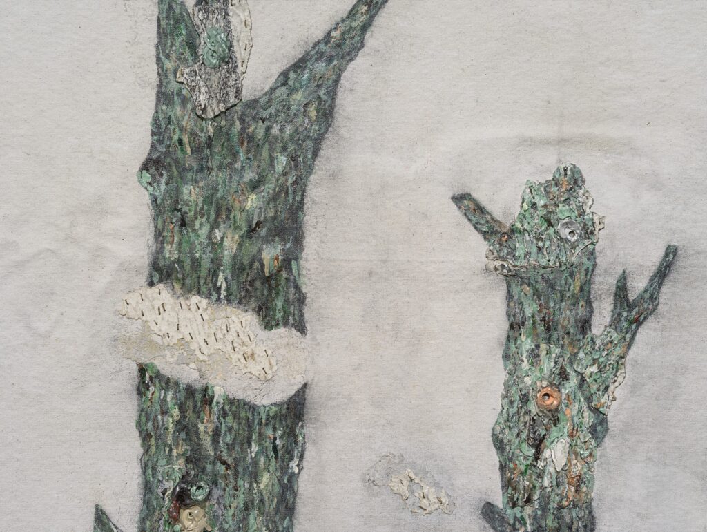 (DETAIL) When the Season Returns XXIV, 2024, Graphite, threads, hot glue sticks, organza fabric, archival glue and varnish on canvas, 96 x 117 cm. Courtesy of the Gallery Isabelle (Saradar Private Collection).