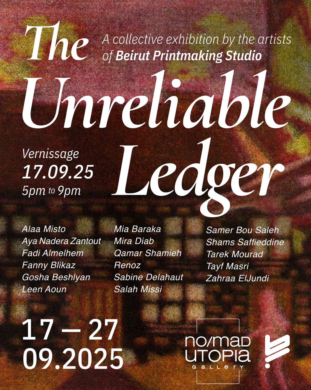 no/mad utopia presents “The Unreliable Ledger” – a collective exhibition featuring works from the artists of Beirut Printmaking Studio, highlighting contemporary approaches to analog processes in both photography and printmaking.