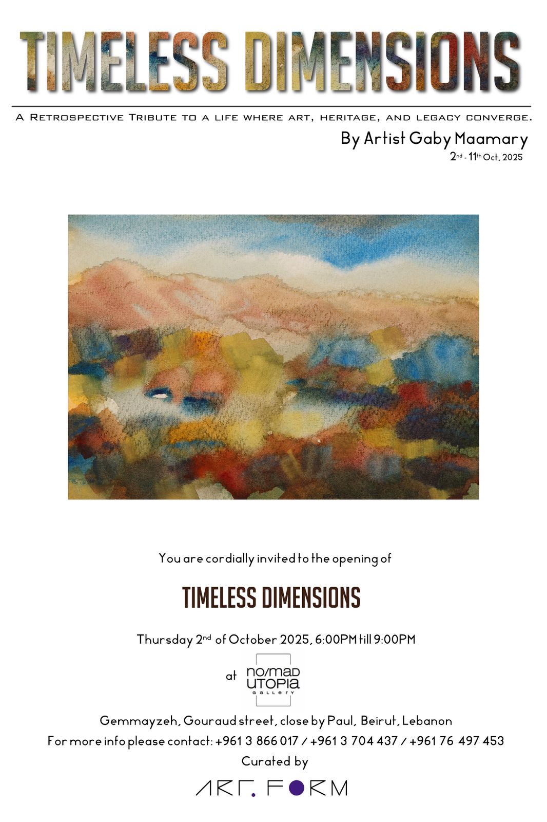 Art Nub Beirut and no/mad utopia gallery present “Timeless Dimensions” a solo exhibition by Gaby Maamary curated by Art Form.