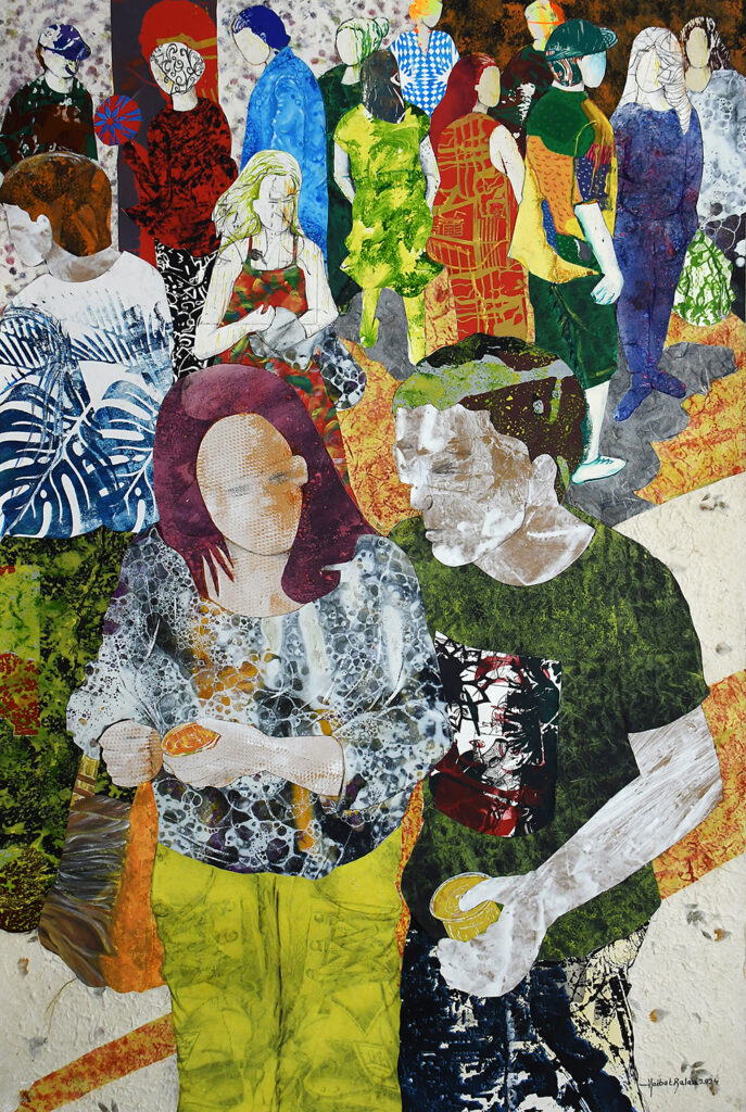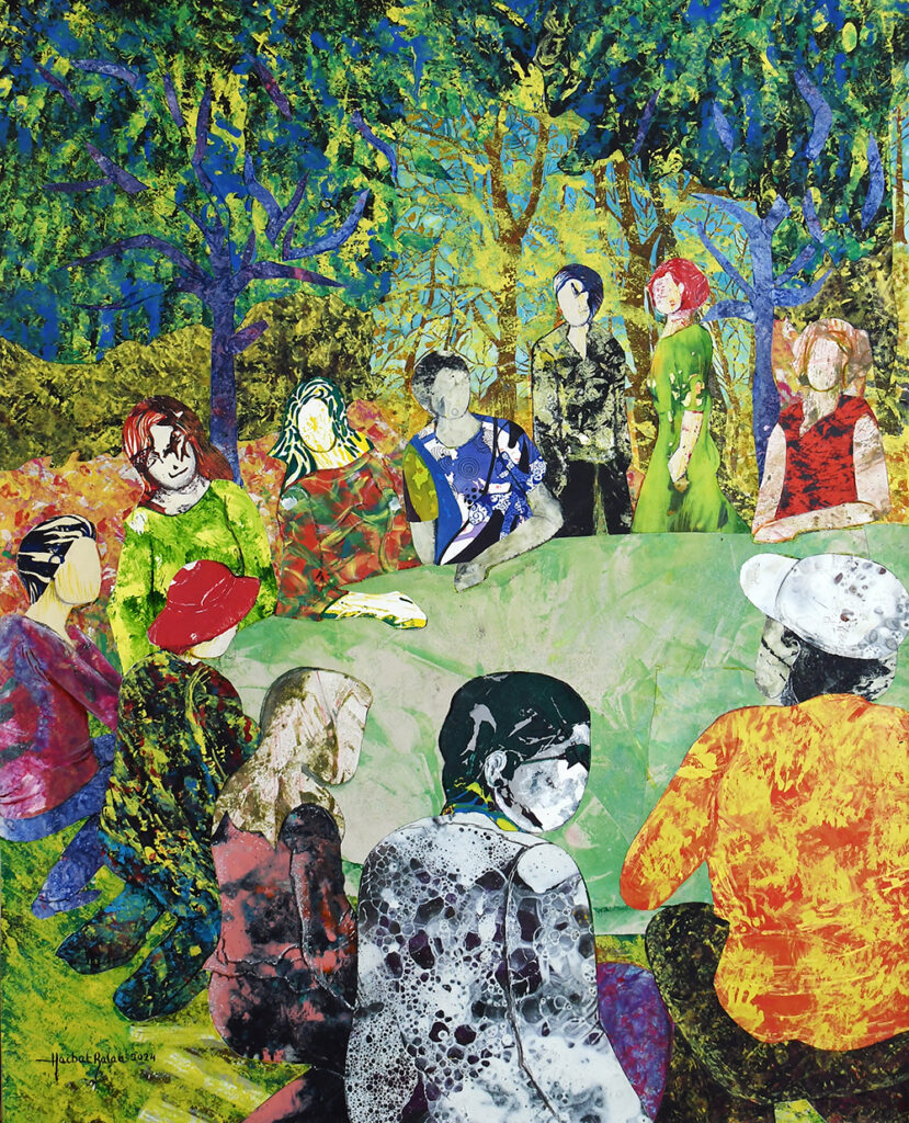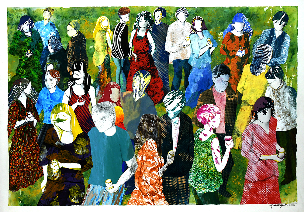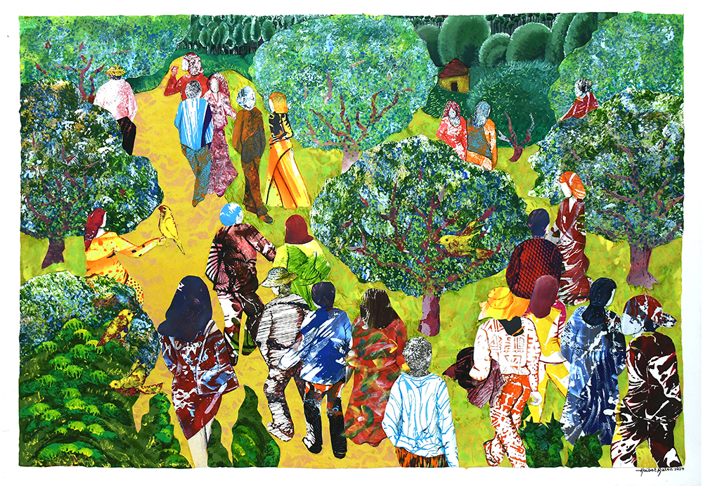 Sunday Gathering, 2024, Mixed Media Collage on Canvas, 90 x 135 cm
